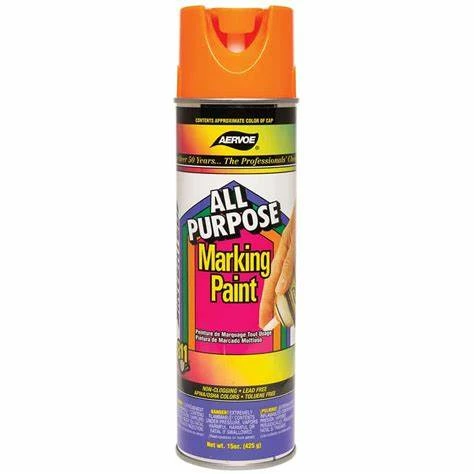 Benefits: Aervoe’s All Purpose Marking Paint is economically priced and provides good visibility in the 30-day range depending on traffic and exposure. It meets standards set by OSHA and APWA/ONE Call Systems. It is not affected by moisture or water and it will not wash away once dry. Can be used with the cap on in Aervoe applicators #1244/1245. The spray-through cap eliminates accidental discharge. Each can is non-clogging and empties completely.
