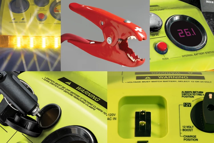 - Accessories/Features: 12V Outlet Polarity Alarm, Voltage Protection, Flashing/Work Light, USB Port