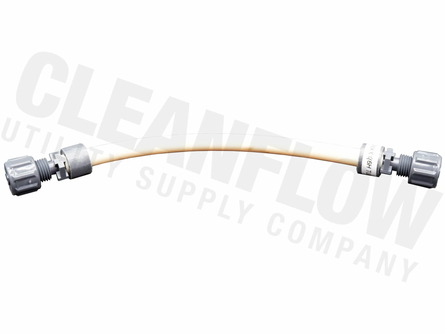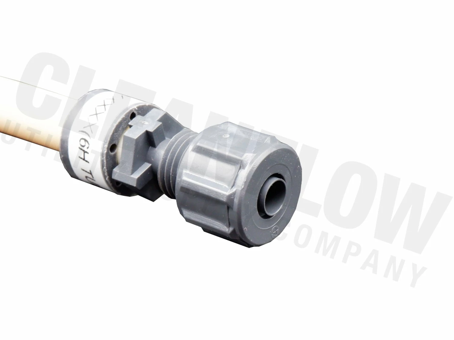 Replacement peristaltic tube assembly is ready to install with attached 1/4″ compression nut with ferrule.