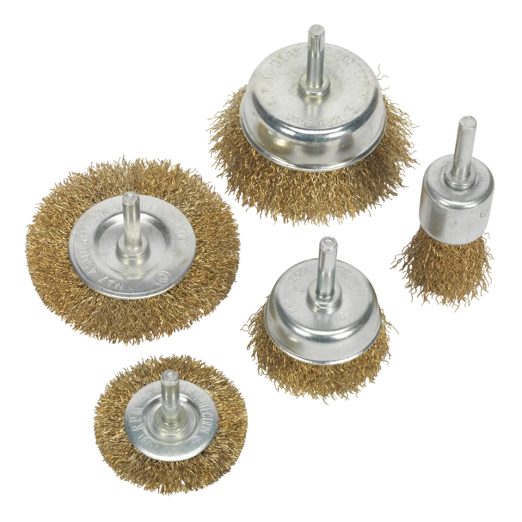 This wire wheel brush set has a 1/4″ drill arbor, to be used with all electric hand drills. Crimped brass filaments add extra rigidity and cleaning power. Used for removal of rust, paint or dirt build-up. Includes the following: