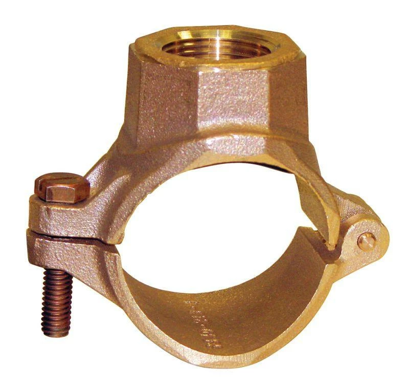 These hinged brass saddles are made with brass alloys with bronze alloy bolts and pins. Nitrile (BUNA-N) gaskets are bonded in place. Their ample width provides even distribution of clamping pressures. These saddles are designed to fit pipes with standard Iron Pipe Size (IPS) diameters and have NPT threads.