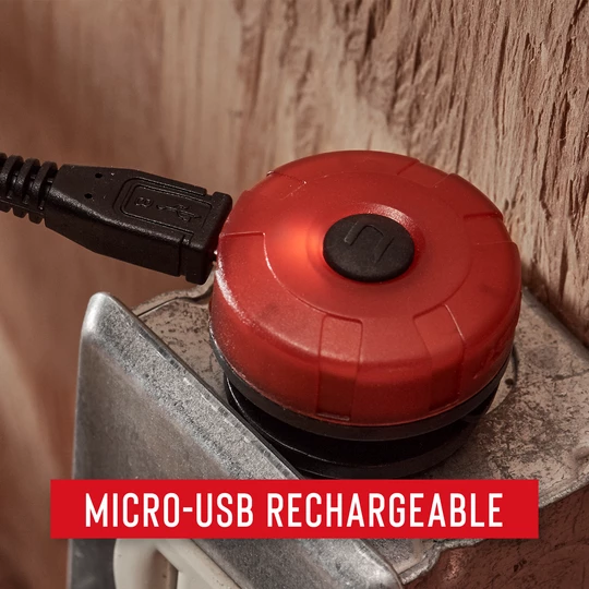 Visible from up to a quarter mile away with a max run time of 41 hours, this button-shaped safety beacon features an embedded COAST ZITHION™ rechargeable battery so that you can power up on your terms (charging cable included).