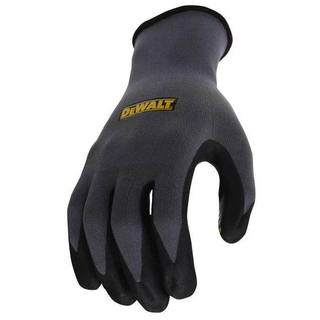 The DEWALT DPG76 dipped glove has a lightweight Polyester/Spandex shell which makes for an incredibly comfortable glove combining high dexterity with superior tactile sensitivity. Foam nitrile dipped palm with a raised tread grip provides outstanding gripping capabilities in handling dry, wet or greasy parts. Uses: Construction, Masonry, Machine Parts Handling