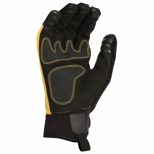 The DEWALT DPG780 Performance Mechanic Work Glove provides superior grip where you need it most. The impact guards help protect from incidental bumps or scrapes while maintaining flexibility and comfort. PVC palm overlays protect against abrasion. This glove features tacky silicone fingertips which offer enhanced grip and control.