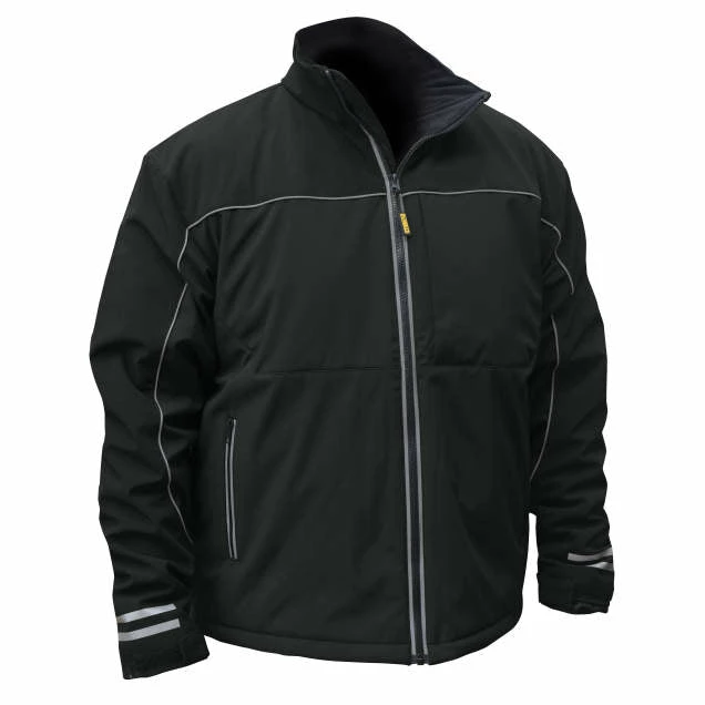 Lightweight Soft Shell Jacket with Reflective accents makes working and living in the cold stylish, visible and WARM! The DEWALT® DCHJ072B Heated Coat provides hours of core body warmth and continuous heat. This jacket features 3 Core Heating Zones and 3 temperatures. Lightweight and Insulated Water and Wind resistant outer shell combined with a warm Fleece lining makes this super comfortable and easy to wear. This is a “Bare” item meaning it comes with the DCB092 adapter and can be used with your DEWALT® 20V battery. The USB power adapter can be used to charge your portable accessories.