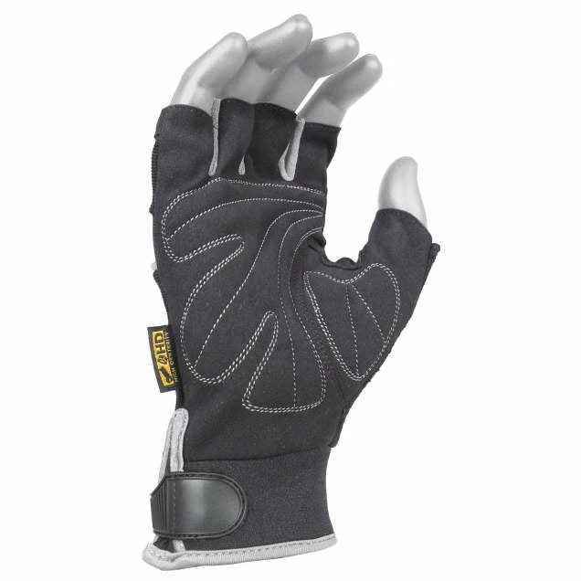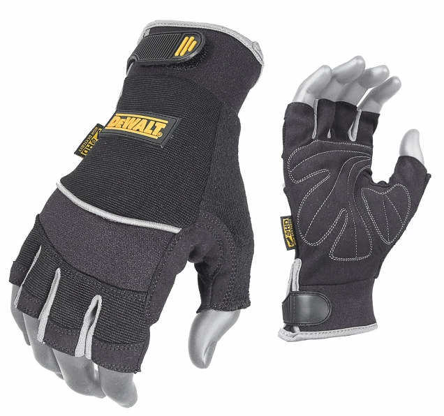 The DEWALT DPG230 Technicians Fingerless Synthetic Leather Glove is a fingerless glove with ultra high “bare finger” dexterity that features a full synthetic palm overlay and extended custom wrist closure, making this the most durable fingerless in its class. DEWALT HD work gloves afford the highest level of comfort and dexterity available for jobs demanding precise control. Abrasion resistant and machine washable.