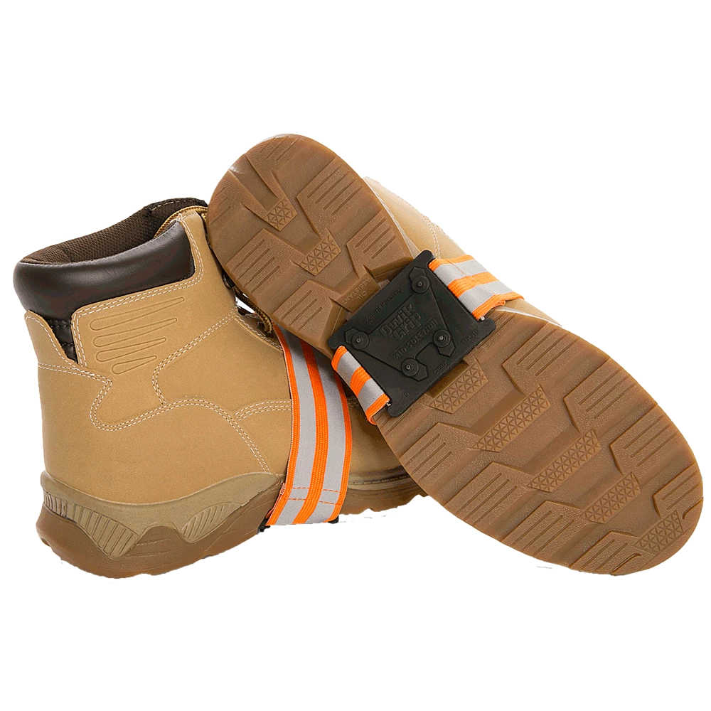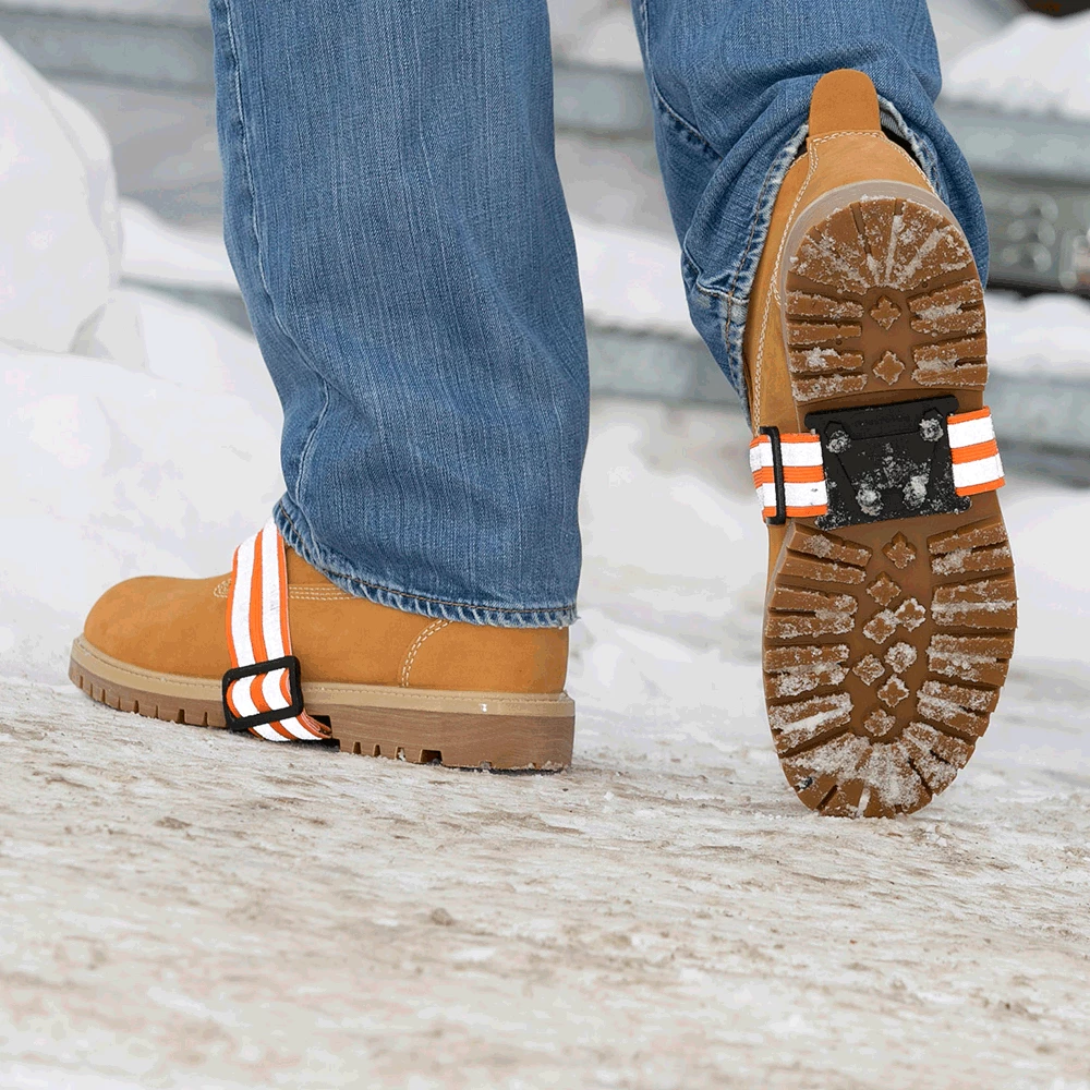 - Ideal when transitioning from indoor-to-outdoor-to-indoor use as well as for drivers, delivery personnel and machine operators where use of a full coverage traction aid may interfere with driving capabilities