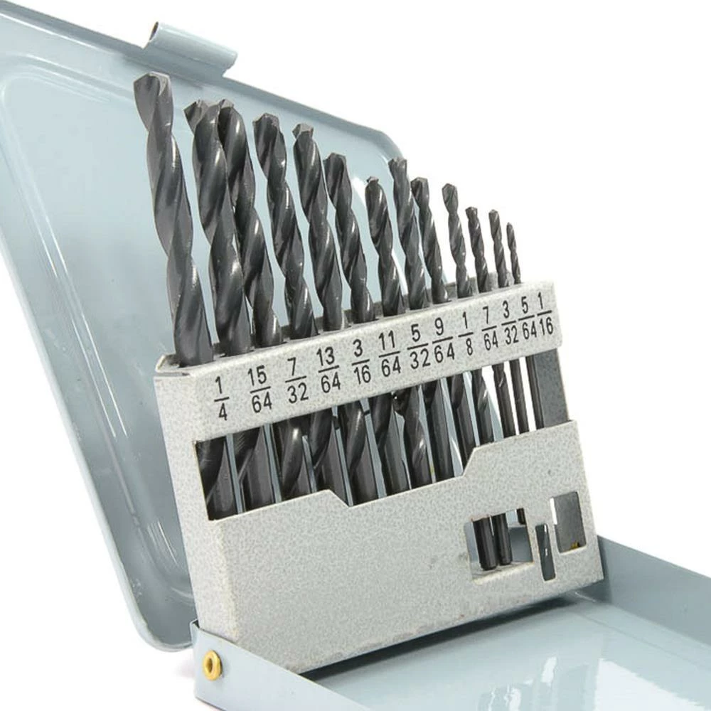 Set includes 1/16″ through 1/4″ by 64ths High Speed Steel (HSS) jobber length drill bits with metal index. HSS drill bits are surface treated and feature a 135° type P3 split point. Provides excellent results in hard steels, titanium and other hard materials. For power and portable drilling.