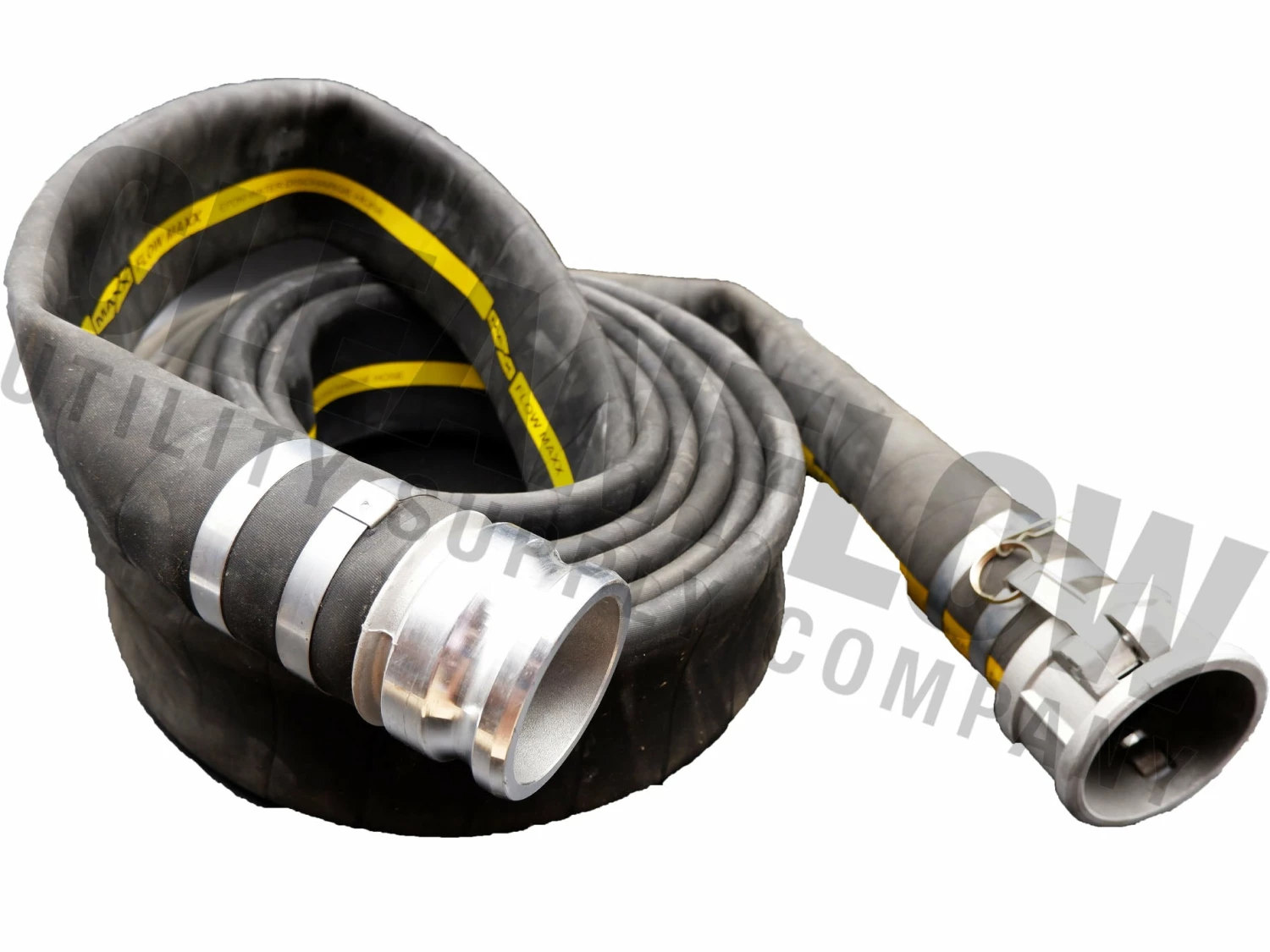 Flow Maxx Water Discharge Hose assemblies have a tube and cover constructed of EPDM, which allows the hose to stand up better to UV exposure while also providing improved chemical resistance when compared to other rubber discharge hoses. Hose also has excellent abrasion, weather and ozone resistance.