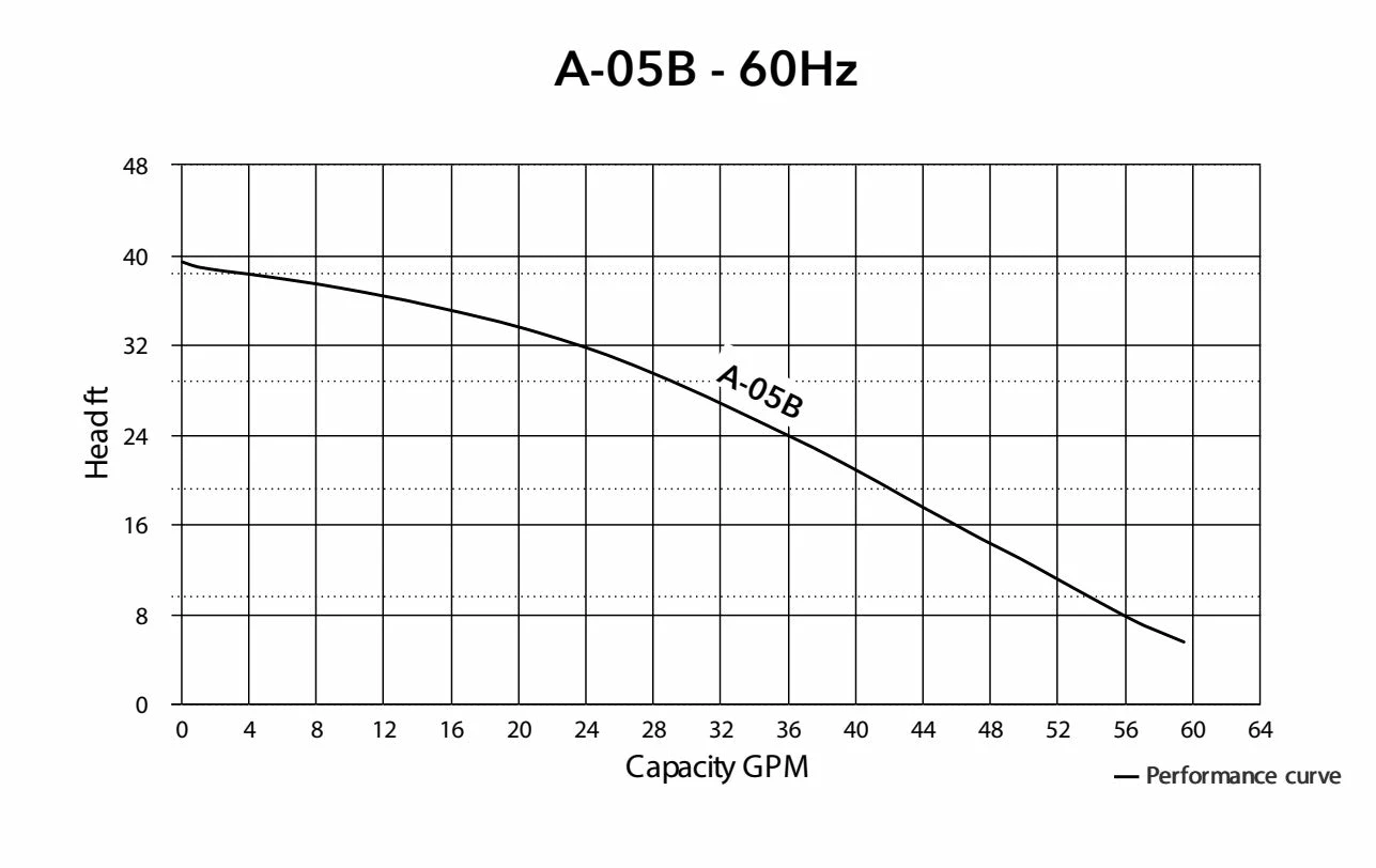 The Model A-05B HCP Submersible Dewatering Pump is ideally suited for dewatering sumps, basins, fish ponds and tanks. The A-05B has a carbon/ceramic upper side and silicon/silicon lower side seal in an oil filled chamber filled with food grade oil. The upper cover and volute are made with cast iron. The impeller is glass fiber reinforced thermoplastic. The motor frame is constructed with 304 stainless steel.