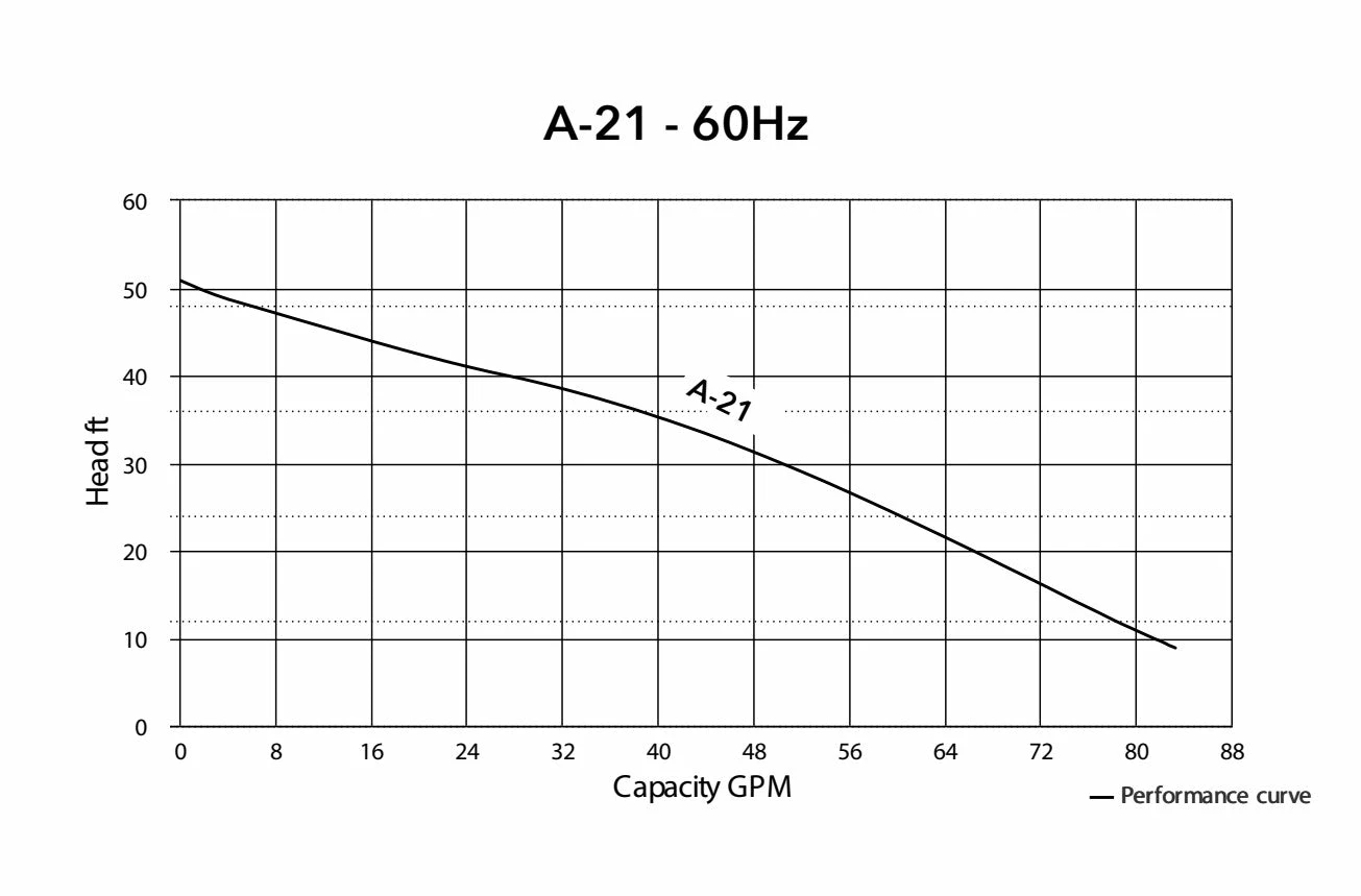 The Model A-21 HCP Dewatering Pump measures 10″ x 7″ x 17″ tall and weighs 45 lbs.