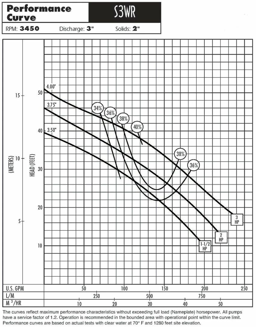 Hydromatic S3WR200M2-2 3″ Sewage Pump | 2 Hp | 240 Volt