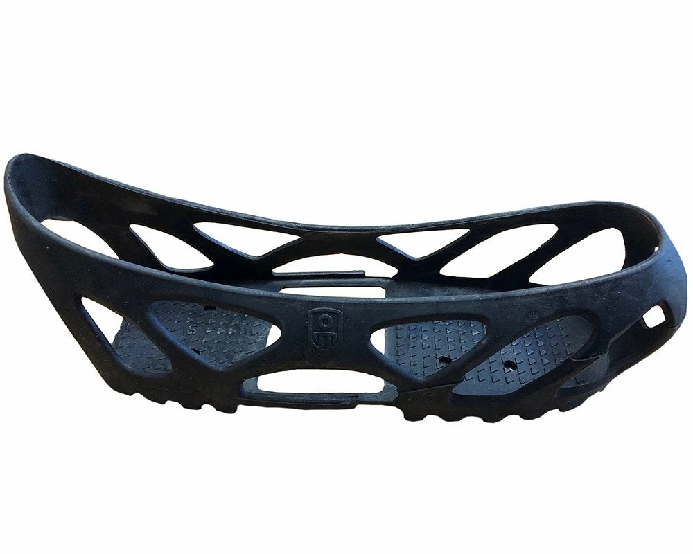 IMPACTO STRIDE Ice Cleats are made of proprietary Thermoplastic elastomer (TPE) that performs to -45 degrees. Deep toe and heel pockets designed for steel toe footwear. Extremely durable. Fits securely to your shoes or boots. Multi-directional traction plates bite into ice and snow.