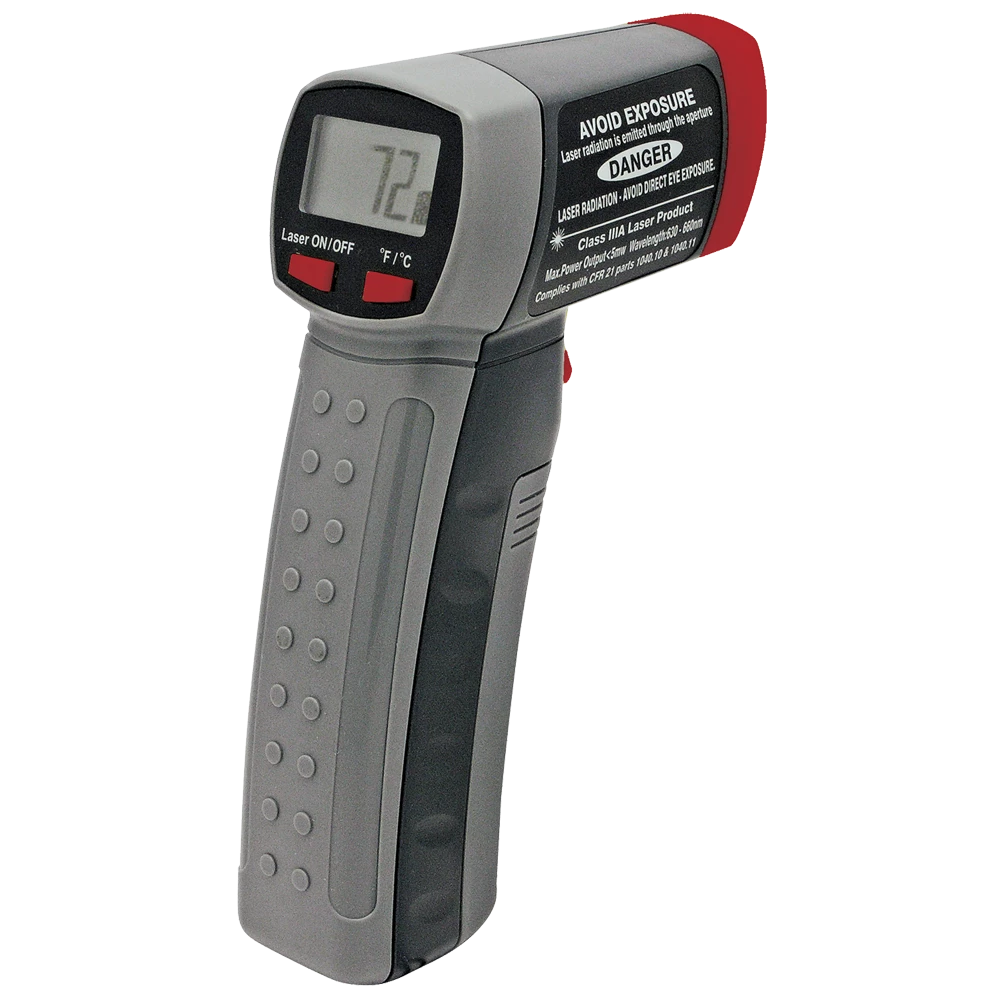 - Ideal for use in inaccessible areas and where moving parts or high heat make contact measurement dangerous