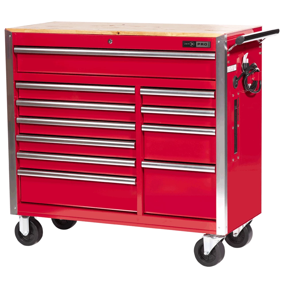 Jet’s Pro Series Roller Cabinet has double wall steel construction for maximum strength and weight capacity.