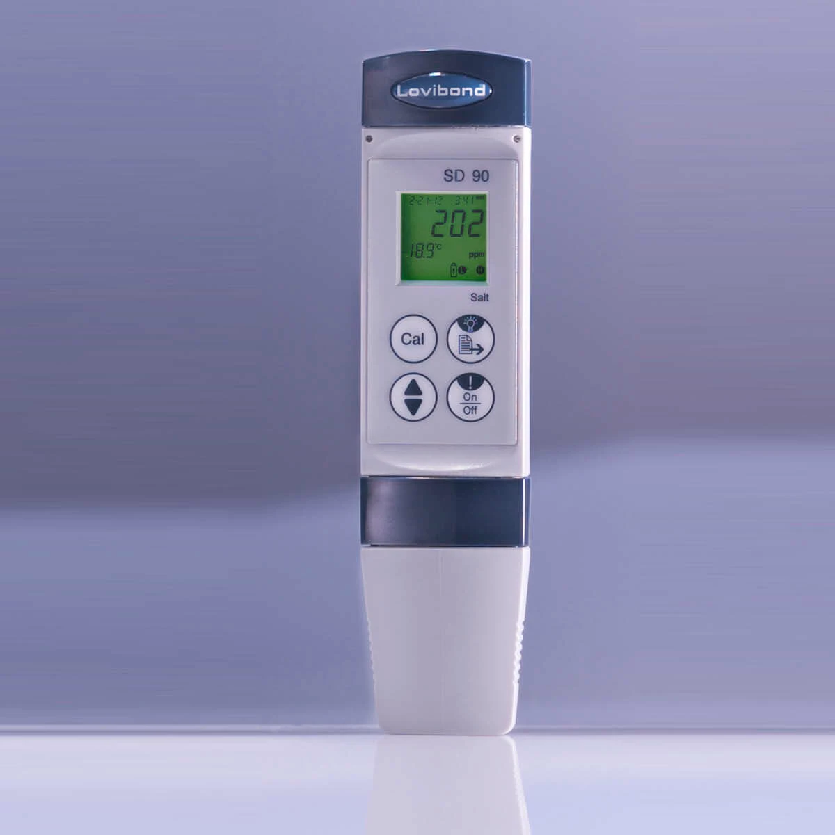 The Lovibond SD 90 Salt tester is an easy-to-use, hand-held instruments with a robust housing and fully waterproof (IP67) casing. This tester is the ideal solution for in-situ testing in environmental, industrial or pool & spa applications.The intuitive scroll-bar functionality and backlit display enable the easy measurement and simultaneous display of result, temperature, date/time and other measurement details.