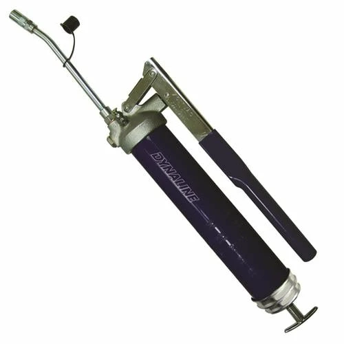 The lever action design of our heavy duty grease guns facilitate accurate control of grease flow. Fitted with a 6â steel curved extension pipe and coupler, these grease guns provide easy access to lubrication points in cars, trucks, tractors and heavy machinery. These grease guns can be loaded with 14 oz. cartridges, through a dispenser or bulk loaded.