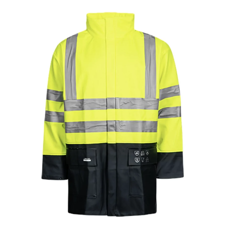 Lyngsoe Rainwear Flame Resistant Work Wear Lyngsoe Flame Resistant HI VIS Rain Jacket In Heavy Quality PVC/PE-CO | Sizes S – 4XL