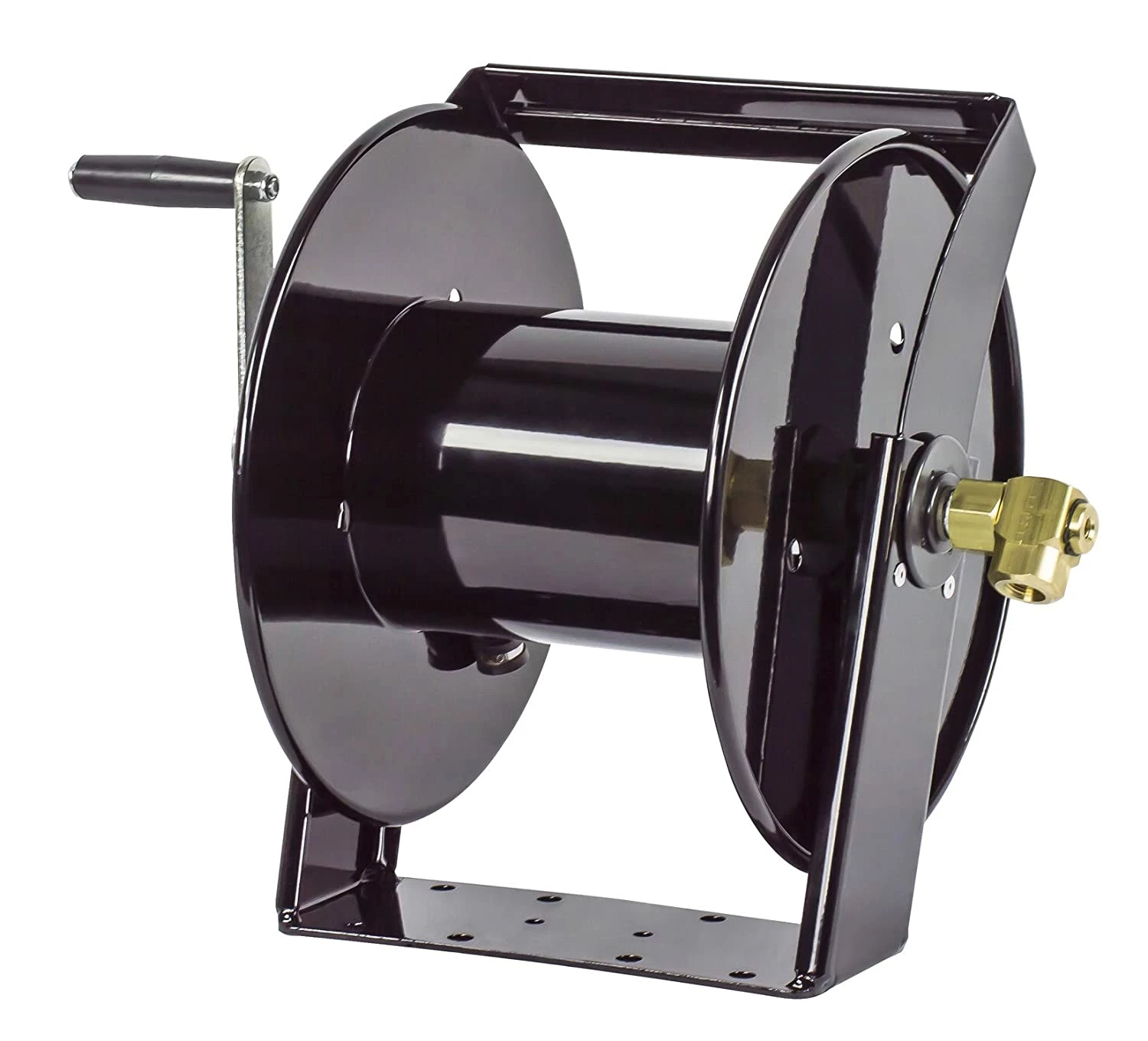 These are commonly used with pressure washer hose at car washes or on service trucks, but can also be used for shop air. When used with the wall mount (sold separately), the swivel base allows the hose to be pulled in a variety of directions. Maximum temperature rating 149°C (300°F). Maximum working pressure: 4000 psi.