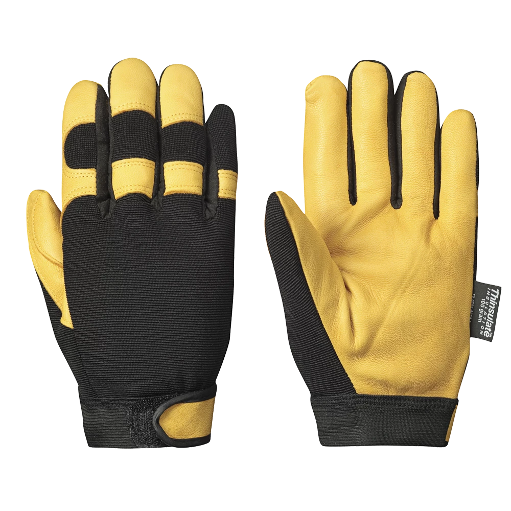 Pioneer 891 Mechanic’s Style Thinsulate Lined Ergonomic Winter Glove with gold goat grain leather and one-piece palm.
