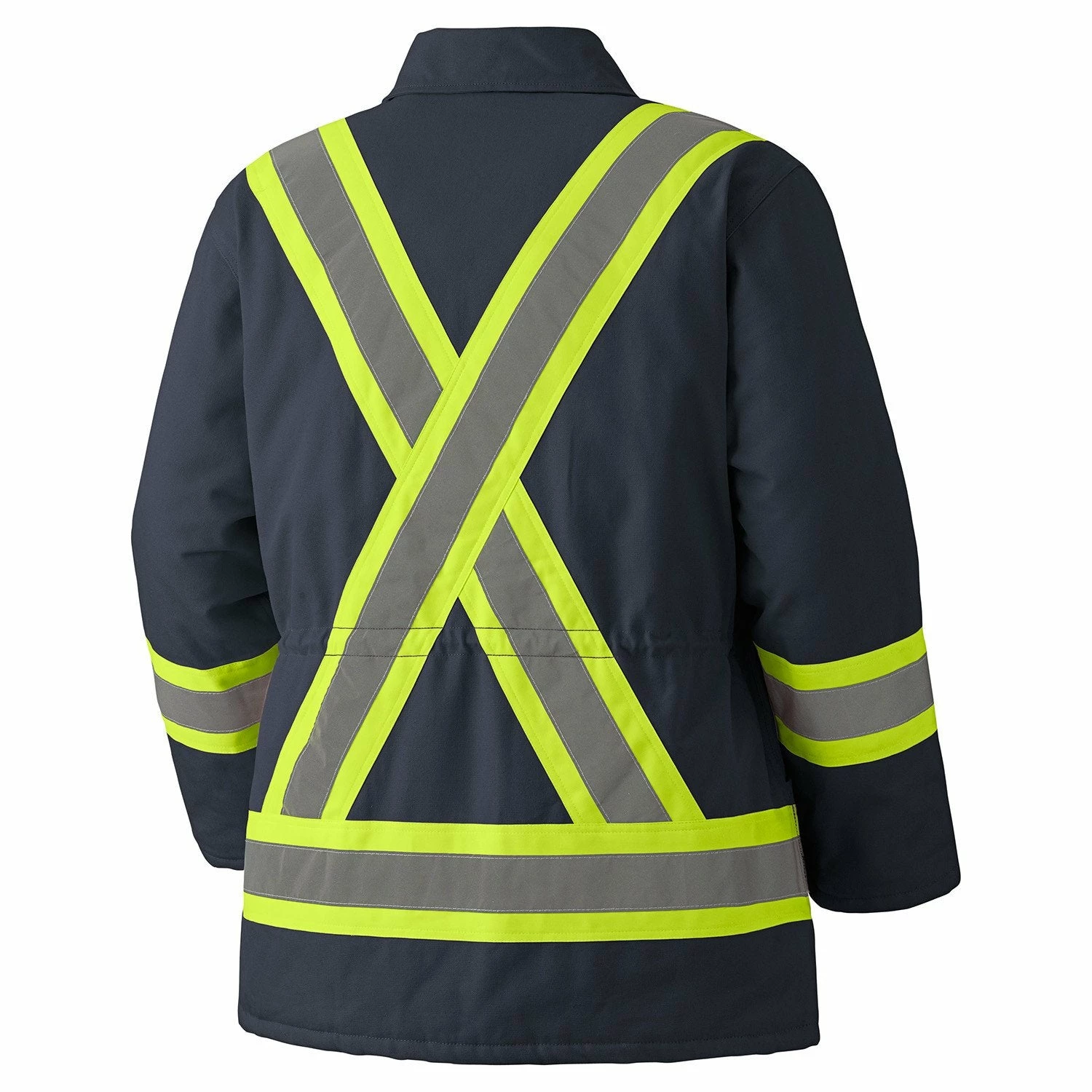 The Black and Navy safety winter parka meets CSA-Z96-2009 Class 1, Level 2 standards.