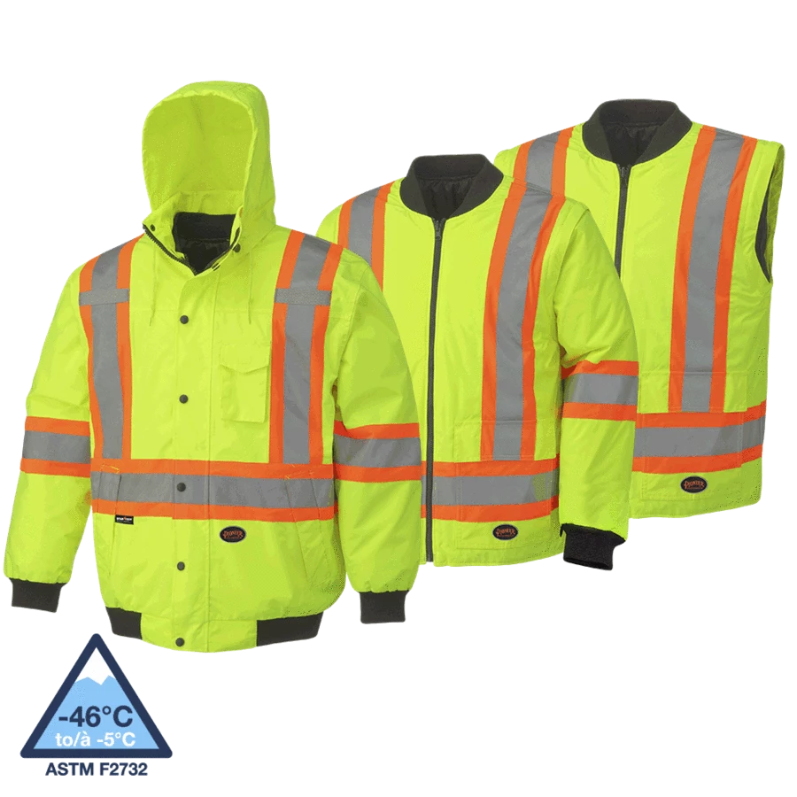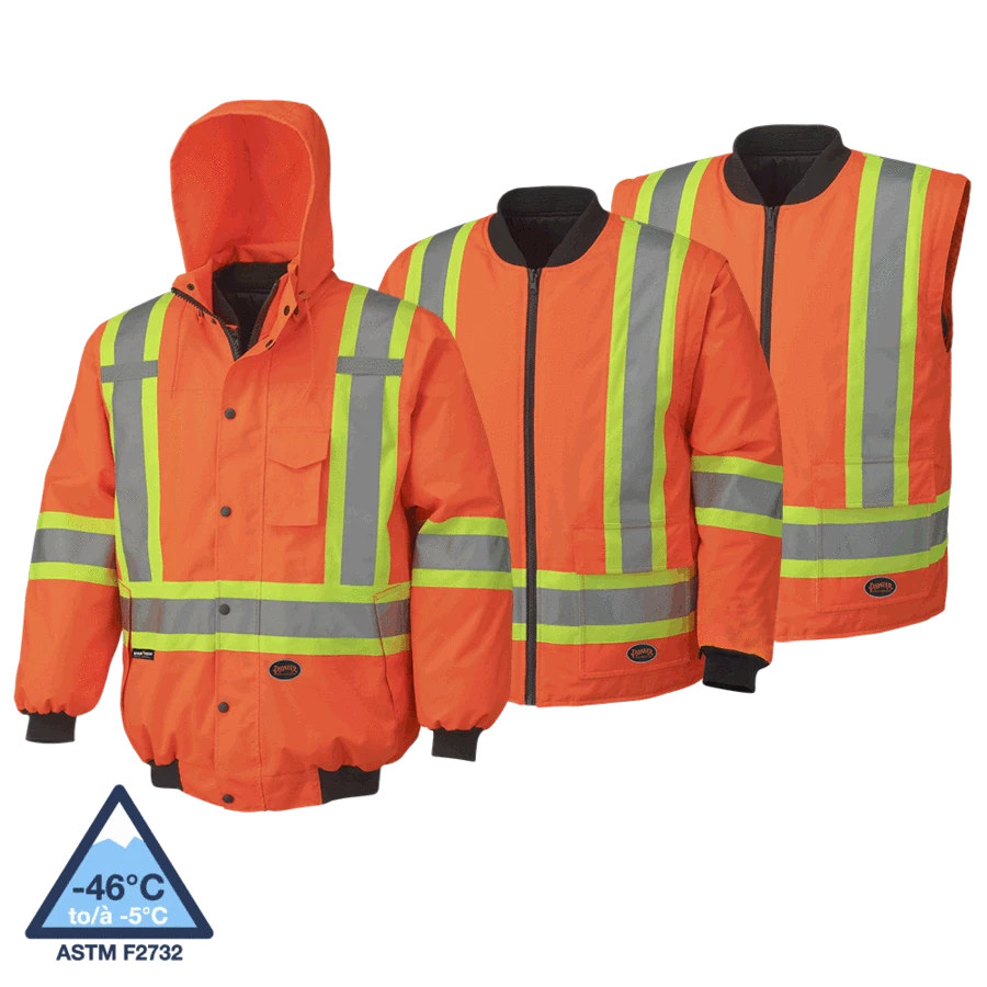 Inner and outer jackets conform to CSA Z96-15 Class 2 Level 2 (as long as sleeves are not zipped off, becomes Class 3 when worn with hi-viz pant featuring reflective leg bands).