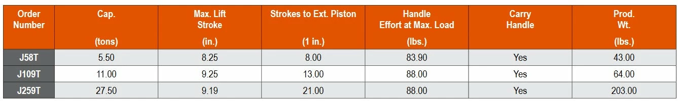 | Size | 5.5 Ton Dual Point Toe Jack, 11 Ton Dual Point Toe Jack, 27.5 Ton Dual Point Toe Jack |