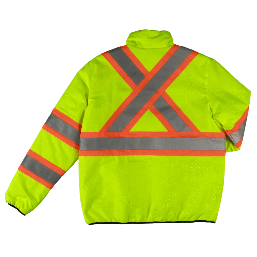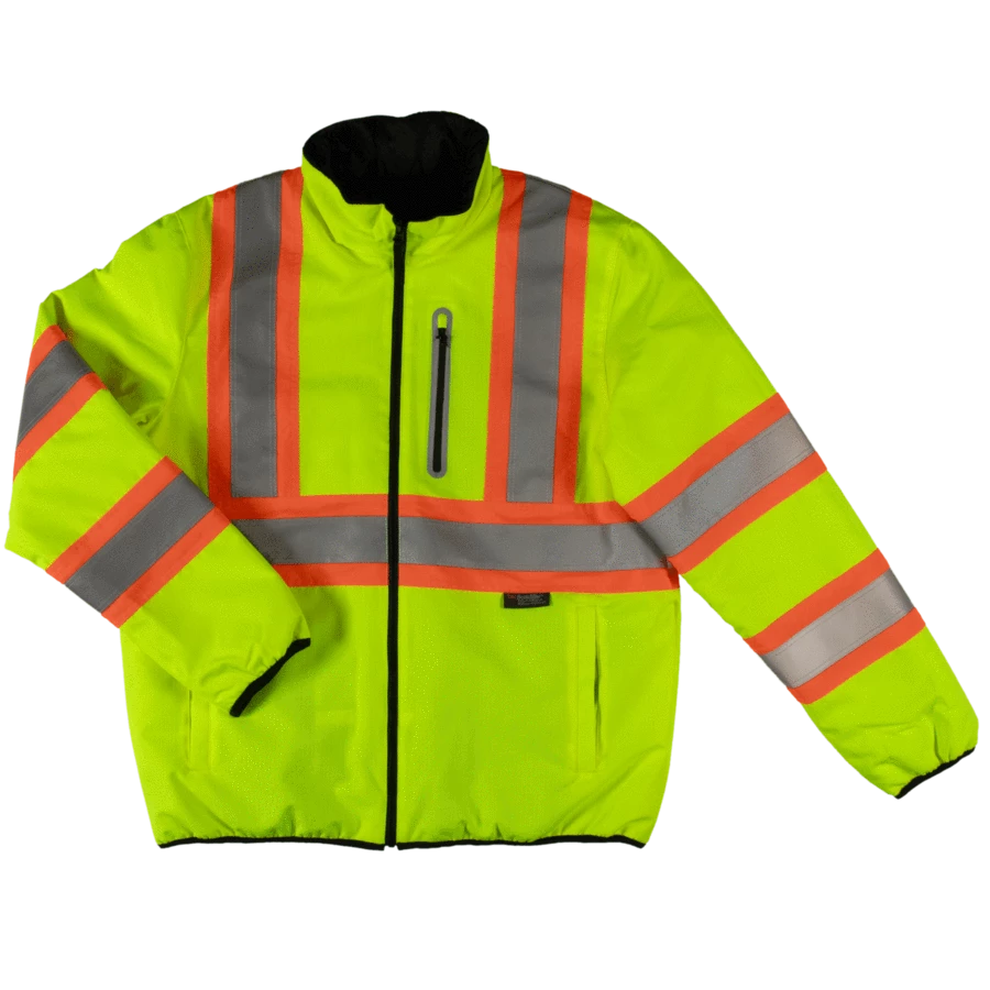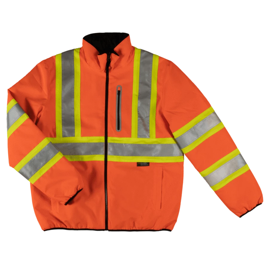 - Chest pocket with reflective trim on hi-vis side