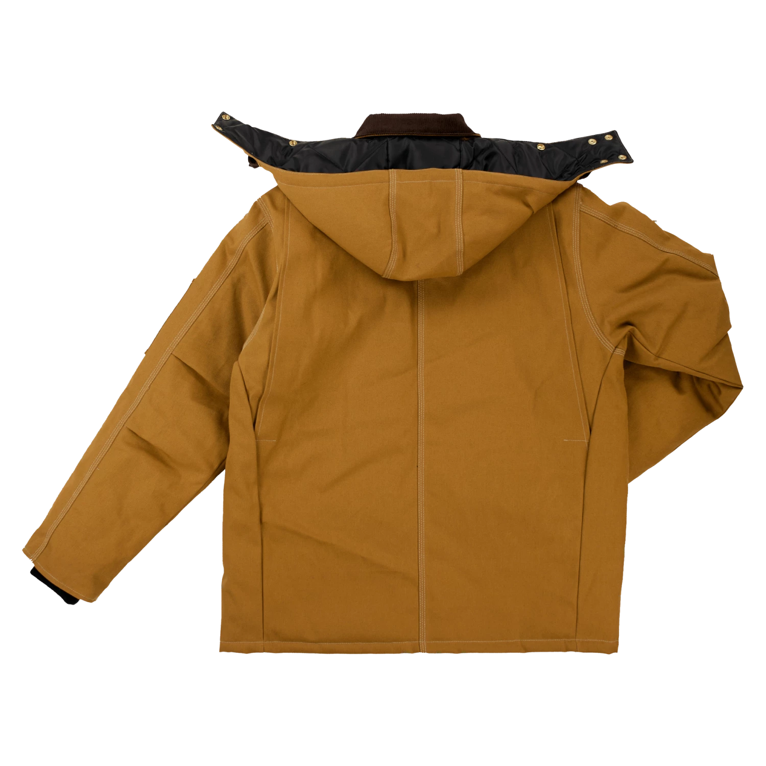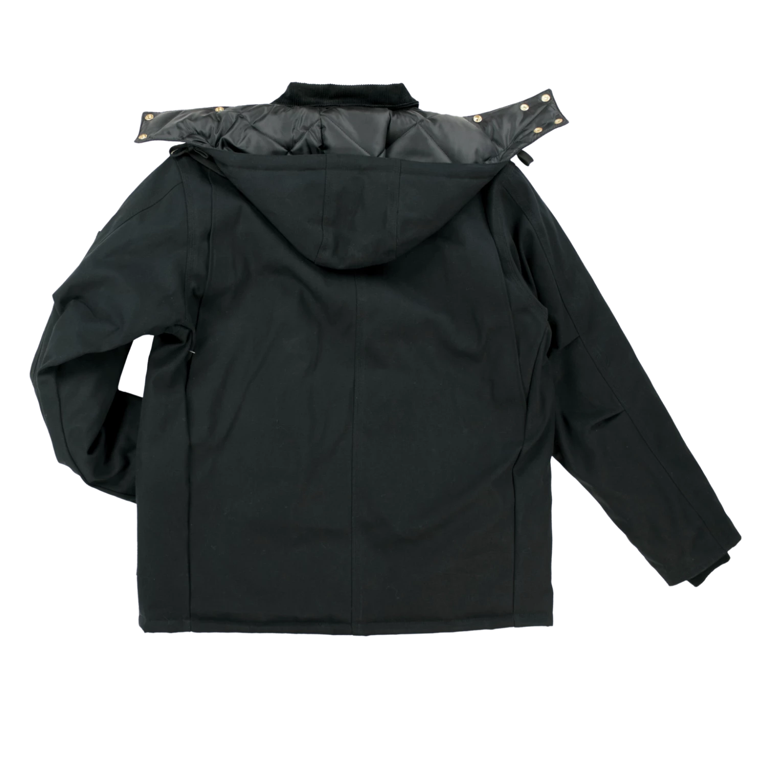 - Detachable hood with chin guard extension and adjustable snaps
