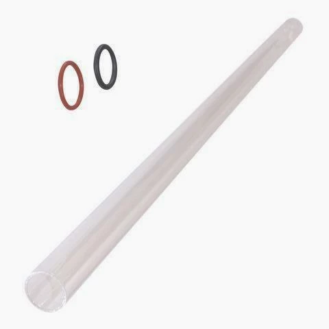 The UV sleeve is domed at one end and is open at the other end. It is shipped with two silicone O rings.