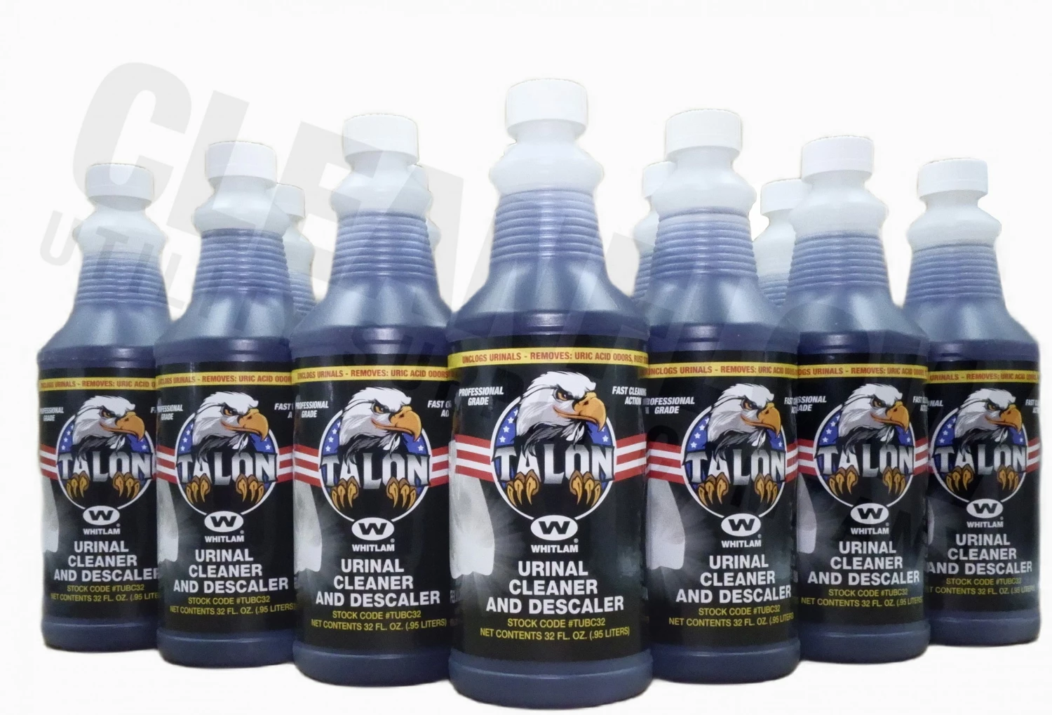 Talon Urinal Cleaner and Descaler dissolves and removes uric acid deposits from urinal drains and traps. Designed to keep urinals open and free flowing and eliminate uric odors.