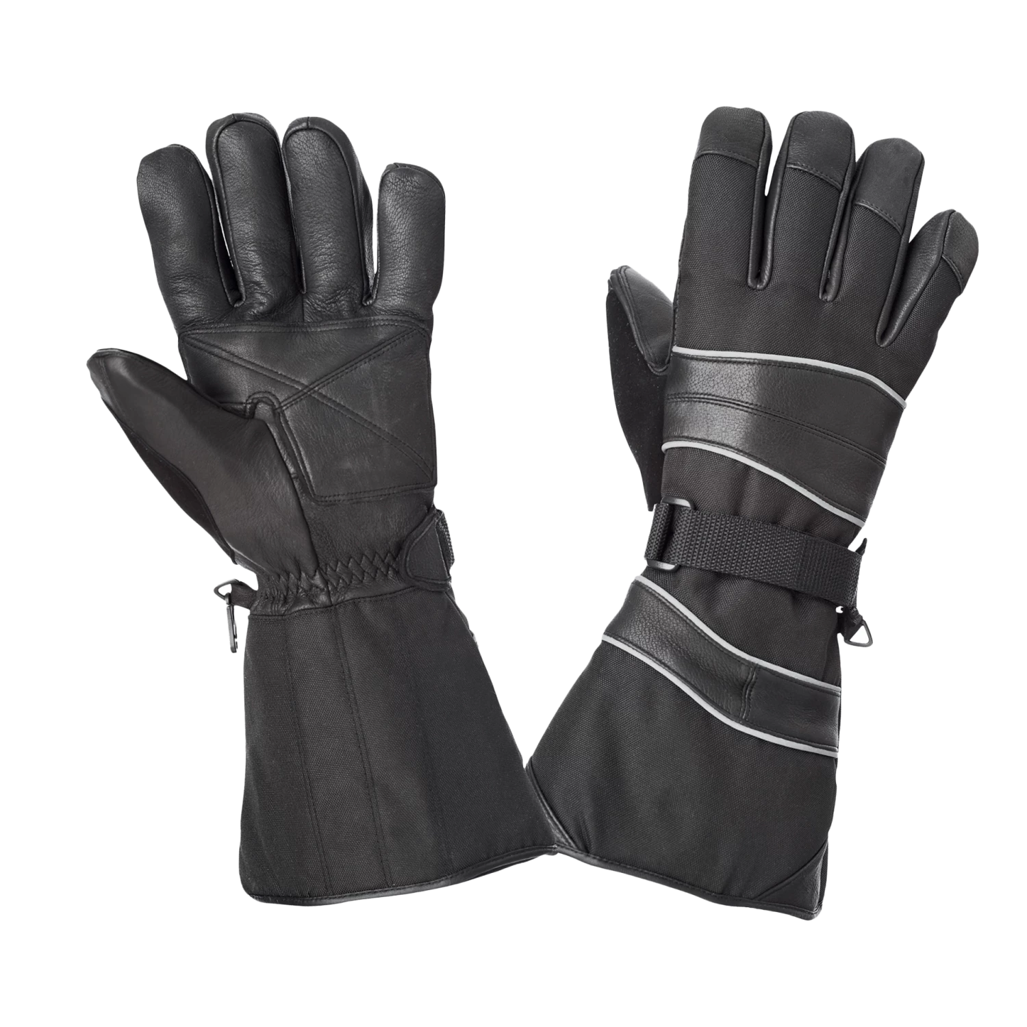 Tough Duck Premium Snowmobile Gloves have a removable fleece padded liner. The grain leather palm is quite durable and the poly oxford shell is water resistant and durable.